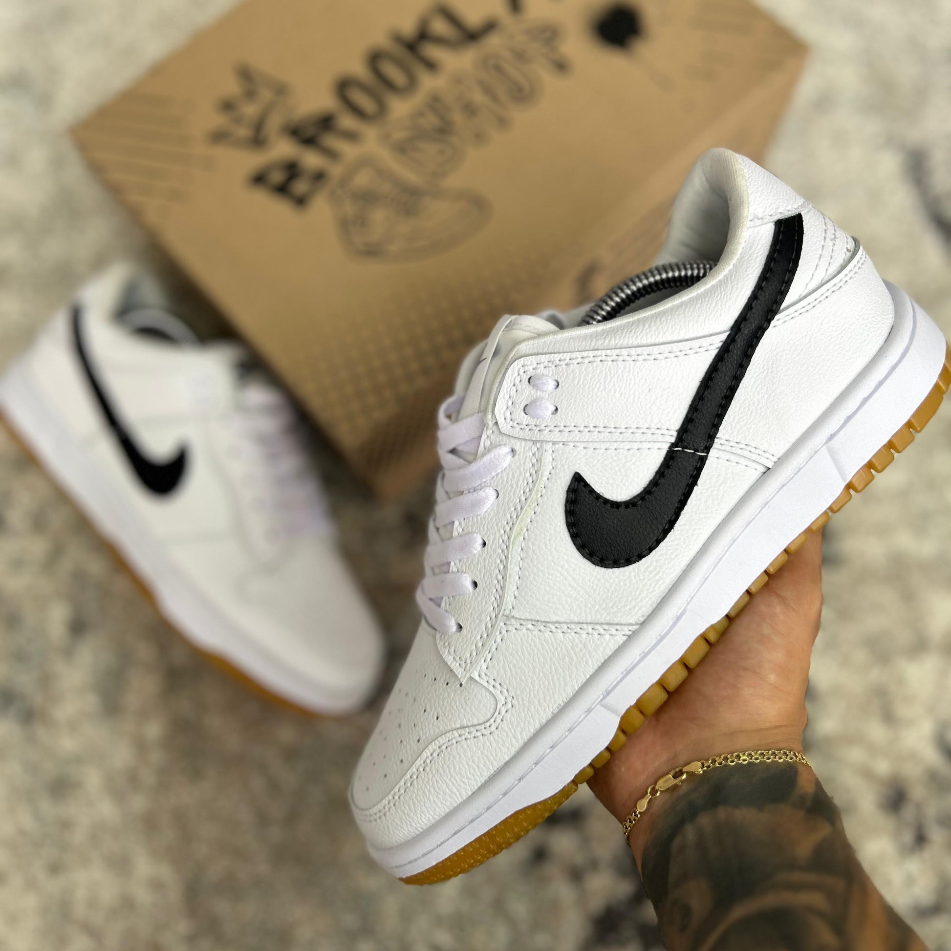 - Parte superior : La parte superior del Nike Dunk está confeccionada en cuero sintético. Estos materiales ofrecen durabilidad, soporte y estilo. Se distingue por su diseño de paneles superpuestos que permiten una amplia variedad de combinaciones de colores. Esto ha hecho que el Dunk sea popular tanto en lanzamientos clásicos como en ediciones limitadas y colaboraciones.
